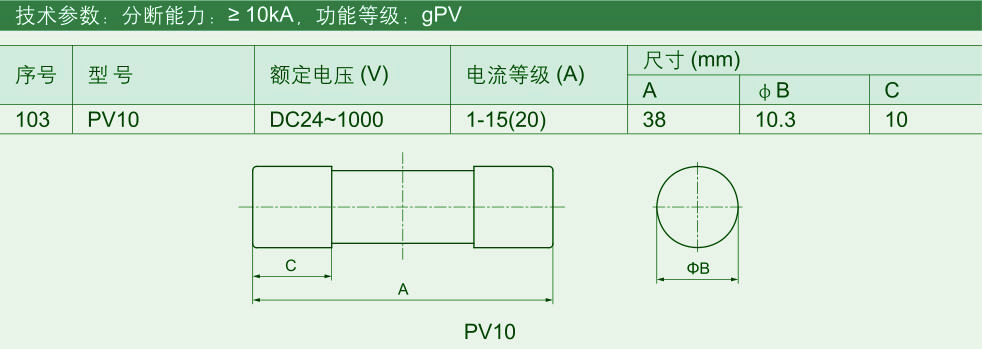 PV10/PV10F 光伏熔斷器